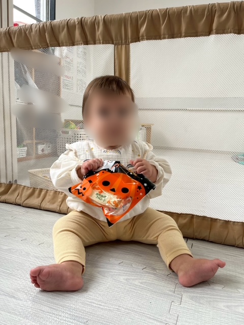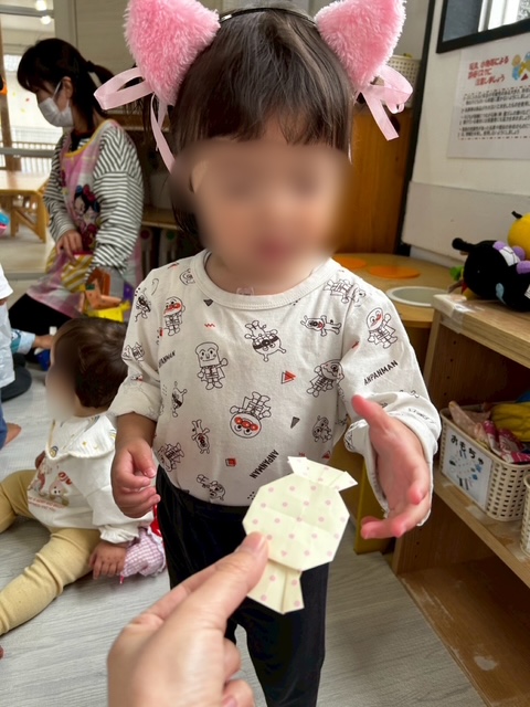 他のクラスの子ども達は園にあるカチューシャなどを付けて仮装を楽しみました✨「あっ!」と指をさしたり、笑顔でやりとりをしたりと表情やしぐさで「楽しい!」を伝えてくれました💛