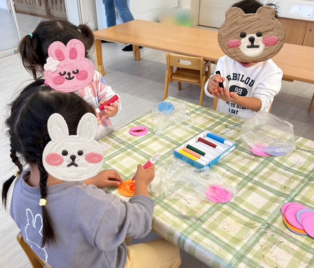 2歳児さんは、プリンのカップを用意して頂き、ふたの部分は好きな色画用紙を選んでペンでお絵描きをしました✨どんぐりを好きな数だけ入れて完成です!