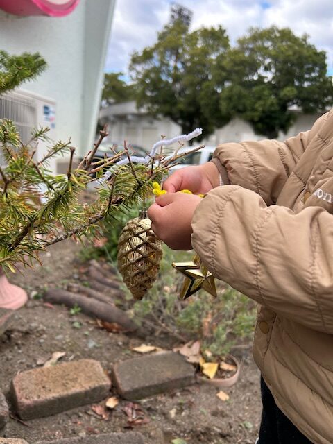 玄関横にあるもみの木に、子ども達と一緒にクリスマスのオーナメントを飾りつけました😀色とりどりの飾りを前に「どれにしようかな~」と悩みながらも自分で選んだオーナメントを嬉しそうに枝へかけていました✨