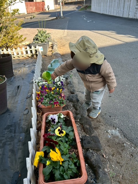 花壇の水やりが大好きな子ども達!