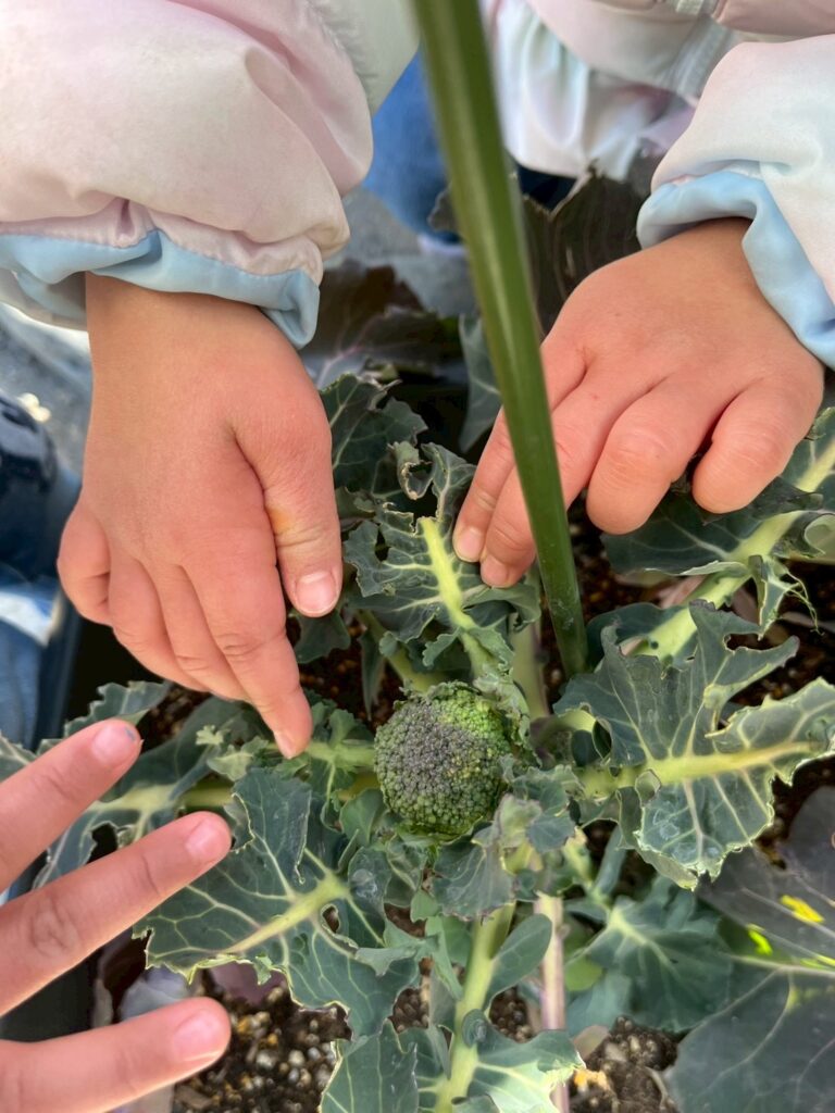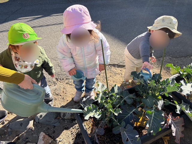 ブロッコリーがおいしく育つよう、気持ちを込めて水やりをしてくれています🥰