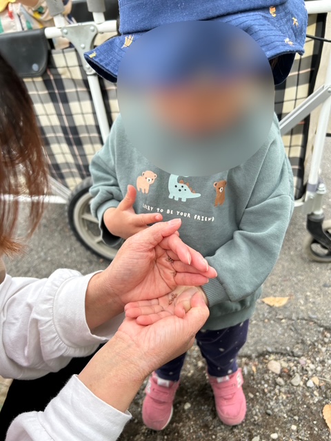 小さなおててに、小さな種をこぼれないよう乗せると、じーっと見つめたり、大事そうに握りしめたりする姿が見られました😊